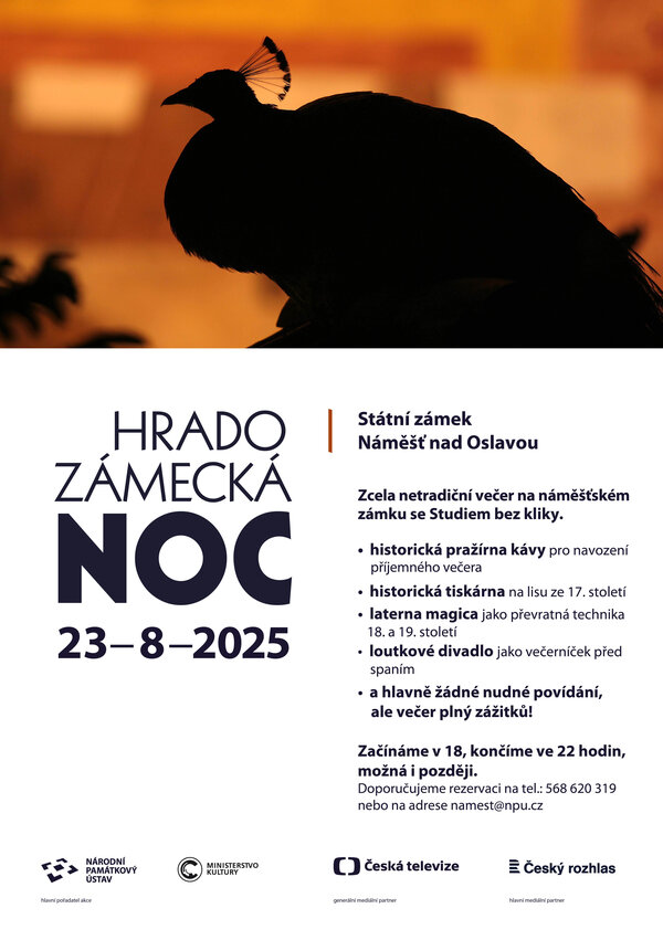 Tradiční projekt Národního památkového ústavu Hradozámecká noc opět zve návštěvníky na večerní prohlídky prostor náměšťského zámku s doprovodným programem.